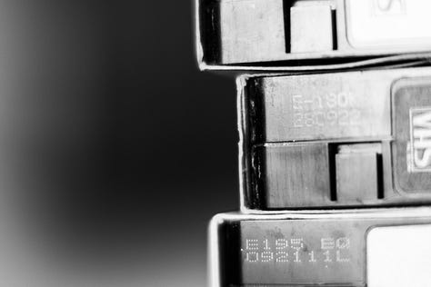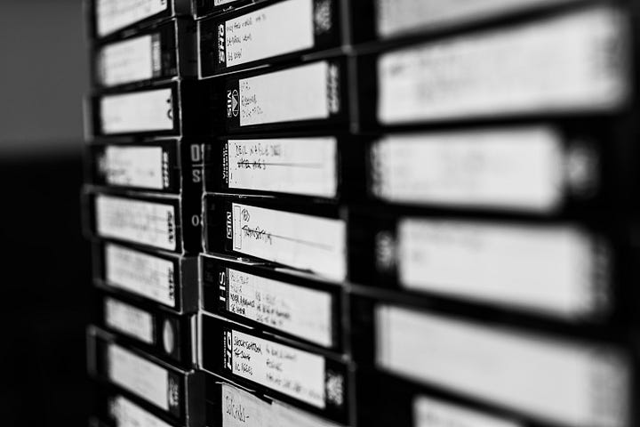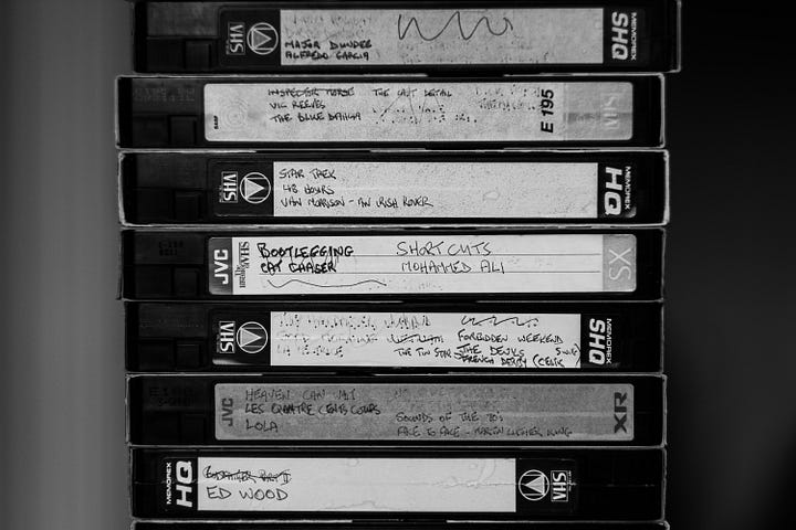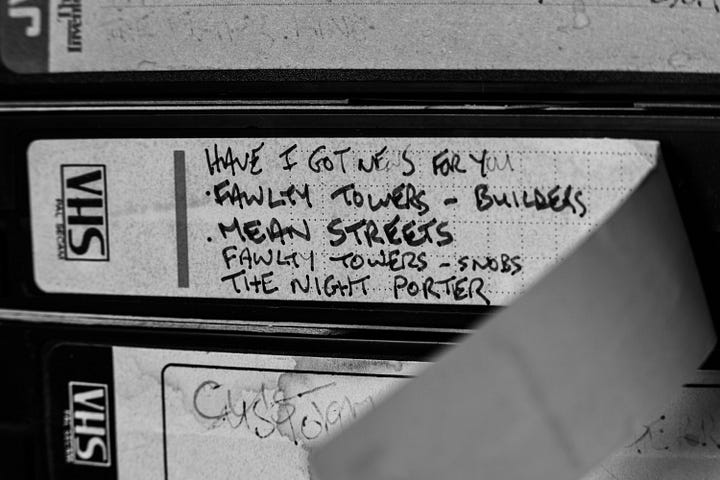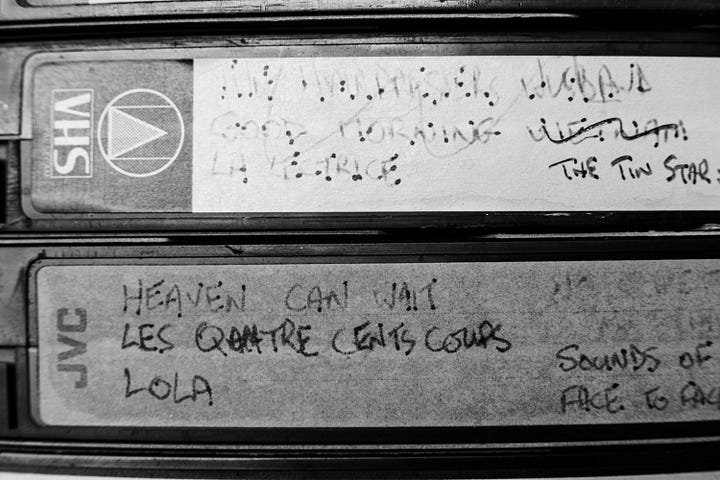 Our children’s consumption of visual media started with VHS cassettes of Disney and Pixar films, bought for them as gifts, before CBeebies took over the job of entertaining them and keeping them quiet. I touched the shelf from time to time, throwing away my small subset of the tapes - films I’d recorded before I moved in with Frank - and asking him whether we really needed to keep all his which were gathering dust. I got a bit more pointed in my requests once we no longer owned a device capable of playing the videos. But he was adamant that they should stay, and that their contents were valuable.